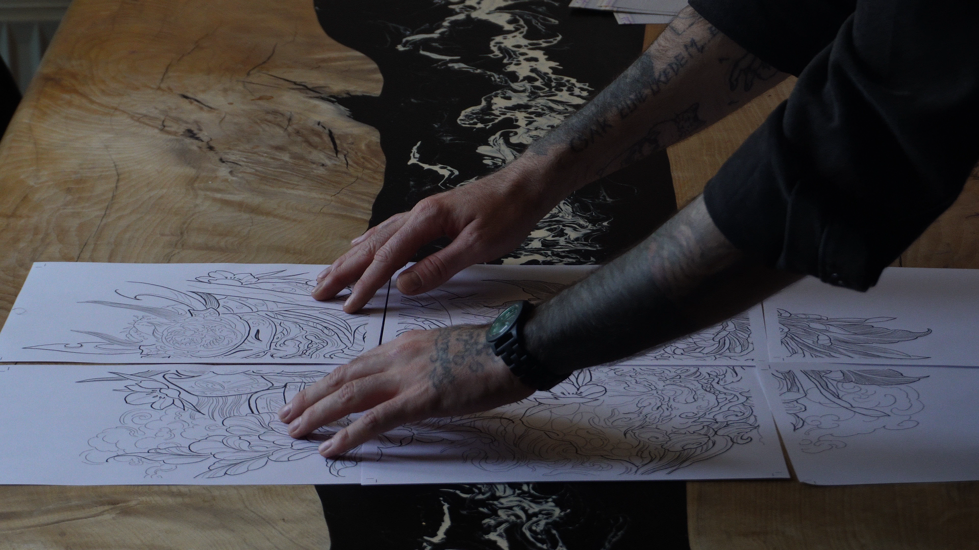 Tattooing professionally since 2012, my work centers on large-scale compositions that are designed specifically for the body they live on.